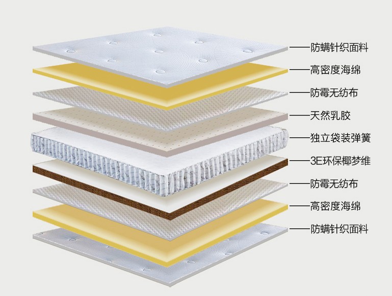 擁有富士安,健康快樂每一天!青島富士安家居有限公司是一家專業(yè)生產(chǎn)床墊的企業(yè),公司一直以市場(chǎng)為主導(dǎo),質(zhì)量為生命。不斷更新,引進(jìn)業(yè)內(nèi)先進(jìn)的高科技工藝、技術(shù)和設(shè)備。結(jié)合自身的雄厚實(shí)力,大膽創(chuàng)新,在床墊的研發(fā)、工藝、款式等方面不斷突破,率先倡導(dǎo)床墊綠色環(huán)保新理念,采用3E環(huán)保椰棕,及當(dāng)今適宜睡眠健康的天然椰子殼外層纖維作為主原料,制作過(guò)程無(wú)膠水、無(wú)甲醛、除潮吸濕、抑菌透氣,冬暖夏涼等。彈簧分為布袋彈簧與精鋼整網(wǎng)彈簧,彈性好、承托性較佳、透氣性較強(qiáng)、防銹耐用等優(yōu)點(diǎn)。天然乳膠其特點(diǎn)是不懸空、不塌陷、柔軟舒適,全方位支撐充分貼合身形,能有效緩解身體各部位壓力...